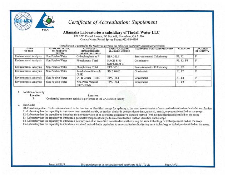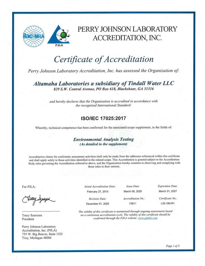 Certification: PJLA ISO/IEC 17025:2017